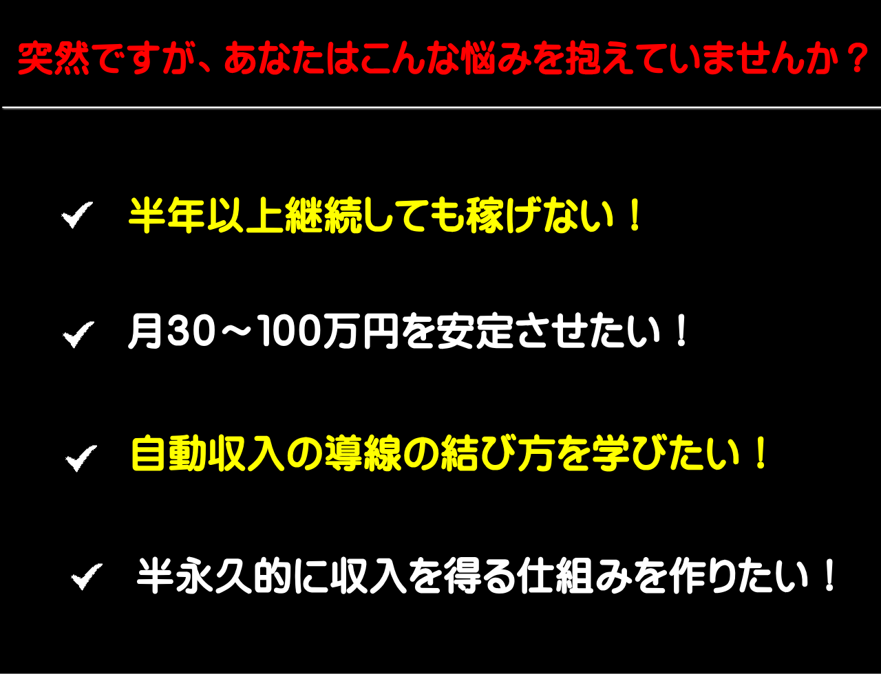 もちろん、それも素晴らしい情報なのですが、この文章を読んでるあなたは、アルバイトに毛が生えたくらいの収入で満足です!とはならないはずです。